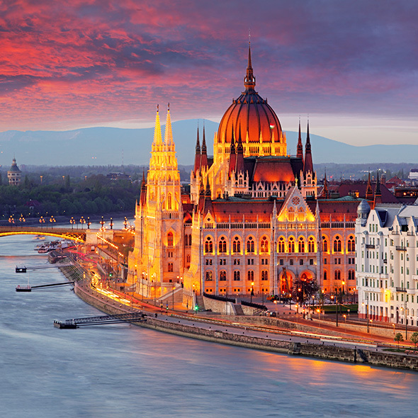 This enchanting and exotic capital of Hungary straddles the banks of the Danube and is divided into two distinct parts, traditional Buda and more modern Pest. Budapest is aptly called "Paris of the East," for its beautiful evening illumination and reflected lights in the Danube's waters.