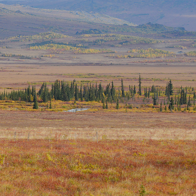 The Yukon Delta National Wildlife Refuge is a striking tundra environment, consisting of a broad, flat delta stitched through with rivers and streams and dotted with countless lakes and ponds. The refuge's fresh and marine waters are home to more than 44 species and the drier upland habitats boast populations of both brown and black bears, caribou, moose and wolves. Along the coast of the refuge, the waters of the Bering Sea host a variety of marine mammals, including harbor, ribbon and bearded seals and walrus.