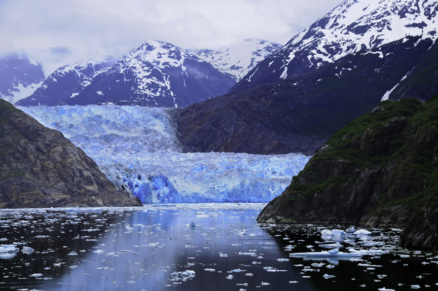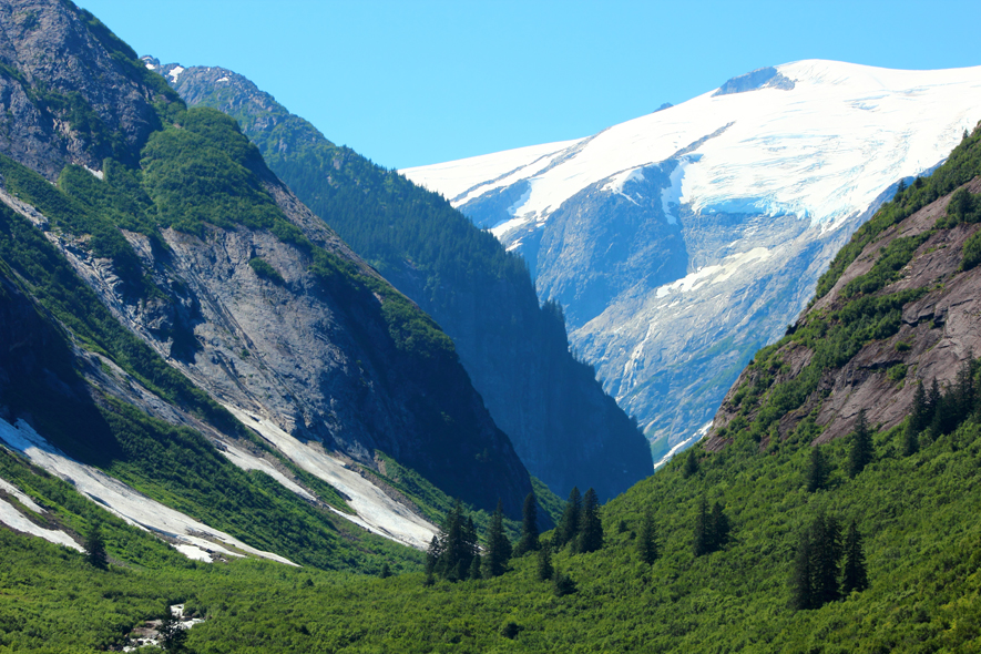 Nestled between 3,000-foot high sheer granite cliffs, the narrow, twisting slice of ocean called Tracy Arm Fjord weaves through the Tongass National Forest for roughly 35 miles. The shoreline is spotted with waterfalls created by melting snowcaps and trees sprouting at odd angles from rocky outcroppings. Travelers cruising through Tracy Arm should take time to admire the landscape and keep an eye out of animals.